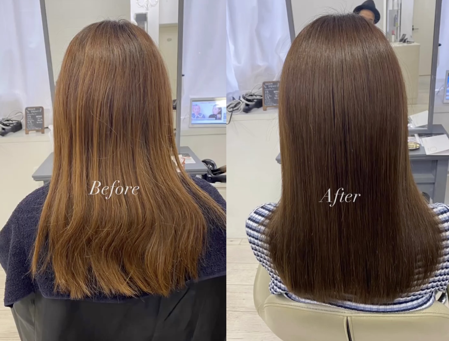 カラー後の髪とは思えないほどのツヤ・柔らかさ・まとまり感。